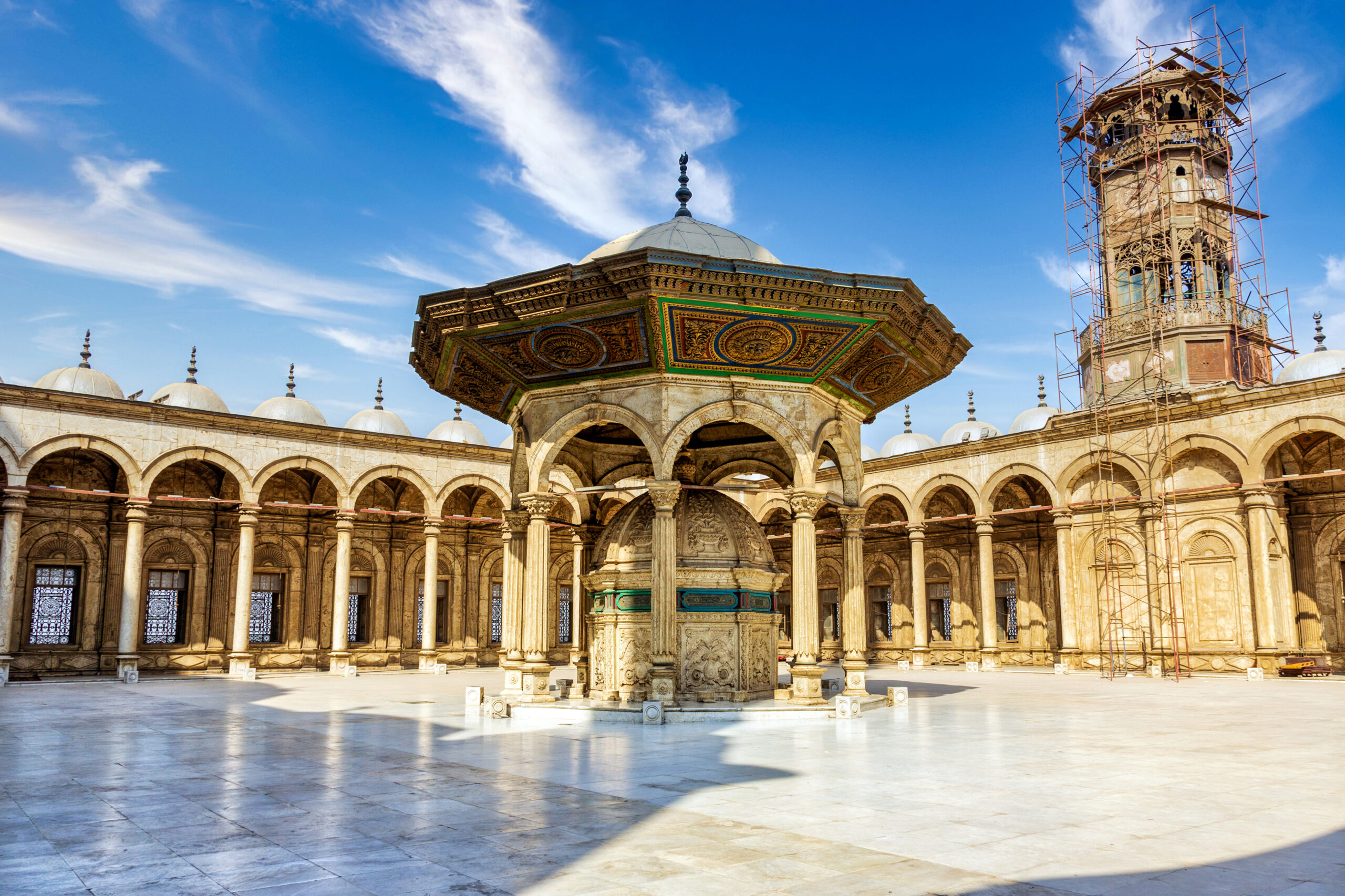 Cidadela de Saladino: é uma fortaleza construída no século XII pelo líder muçulmano Saladino com o objetivo de proteger a cidade durante as Cruzadas. É uma das mais impressionantes estruturas militares medievais do mundo islâmico e um importante ponto turístico e histórico do Egito. Erguida no alto de uma colina no Cairo Islâmico, é cercada por uma imponente muralha e repleta de torres defensivas estratégicas. Em seu interior é possível visitar a Mesquita de Alabastro, construída por Muhammad Ali em estilo otomano sendo uma das mais icônicas do Egito. Possui esse nome devido ao material que reveste seu interior e exterior. Na Cidadela de Saladino ainda é possível visitar museus e ter uma vista magnífica do Cairo.